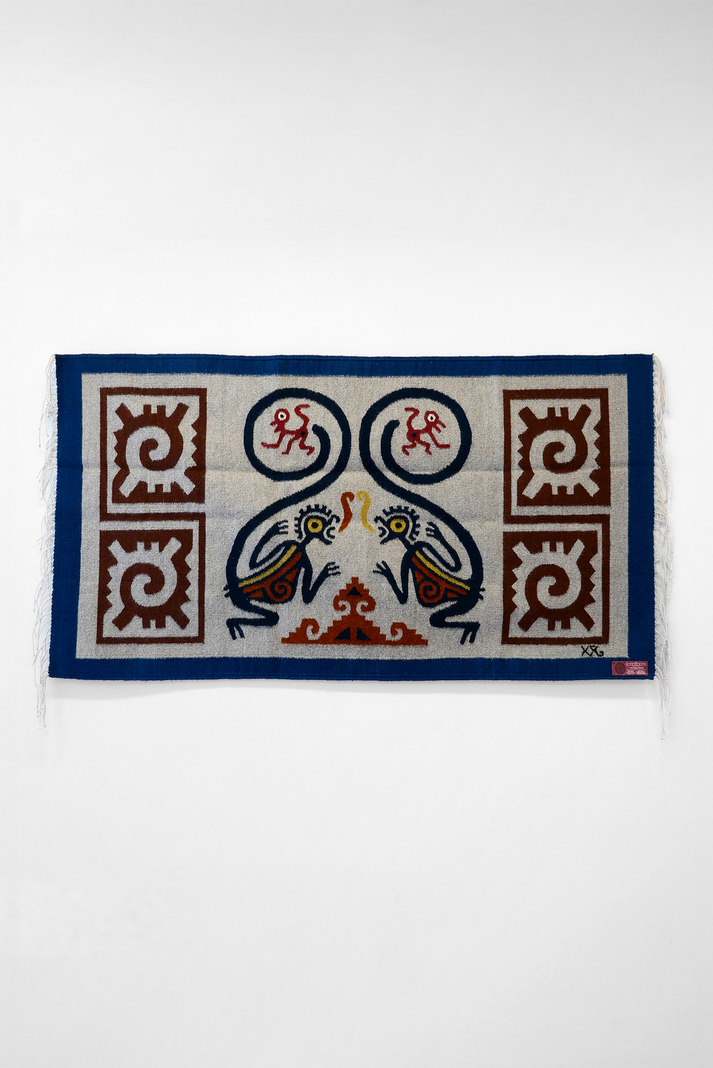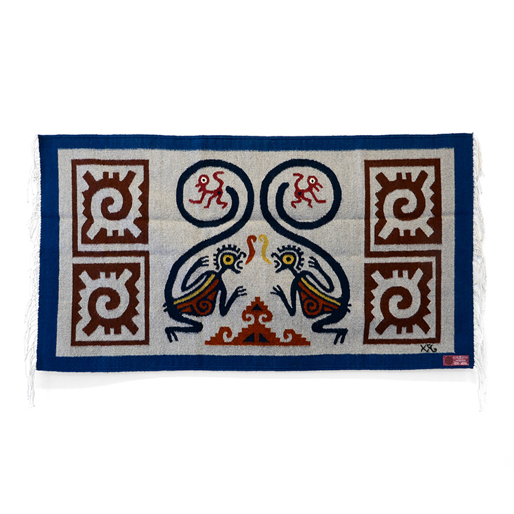 Pattern : 원숭이 (Monkey) – 예술적 영감과 창조의 에너지를 상징하는 자포텍 문화의 상징적 존재. 마주한 두 원숭이는 조화와 소통을, 그 사이의 불꽃은 생명력과 지혜의 불씨를 의미한다.